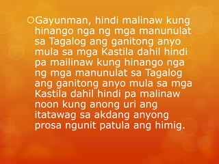 Save Save 237878083-Panitikang-Tradisyunal-at-Popularpptx For Later. Sanaysay maiksing komposisyon na kailimitang naglalaman ngpersonal na kuru-kuro ng may-akda. Ayon kay William Rodriguez Sinasabing ang tabloid ay pang-masa dahil sa Tagalog ito nakasulat bagamat ilan dito.